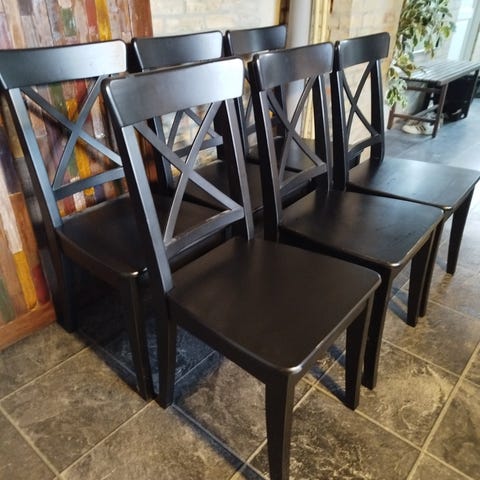INGOLF Stole. 3 stk. Der er også en 4 stol, dog er ryglænet røget af, den kommer selvfølgelig med prisen.