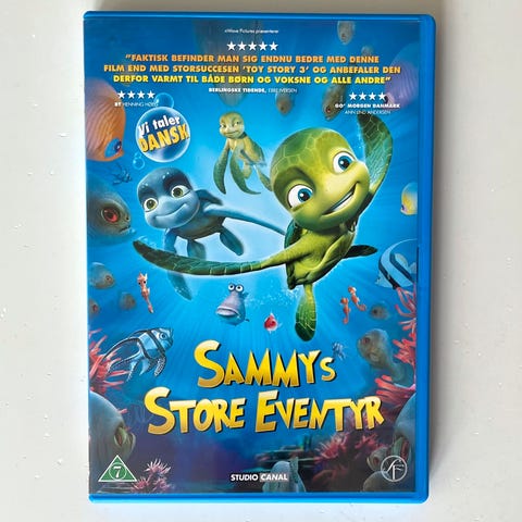 Studio Canal Sammy's Store Eventyr DVD film. Filmens sprog er dansk og den indeholder undertekster på flere sprog. Filmen følger havskildpadden Sammy på hans eventyr i havet.