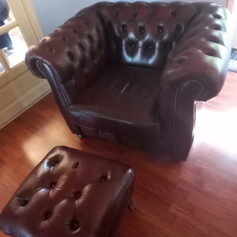 Fantastisk Chesterfield kontorstol, blå bølge farve. Fremragende stand! Prisen er 4500 kr. Levering er gratis!