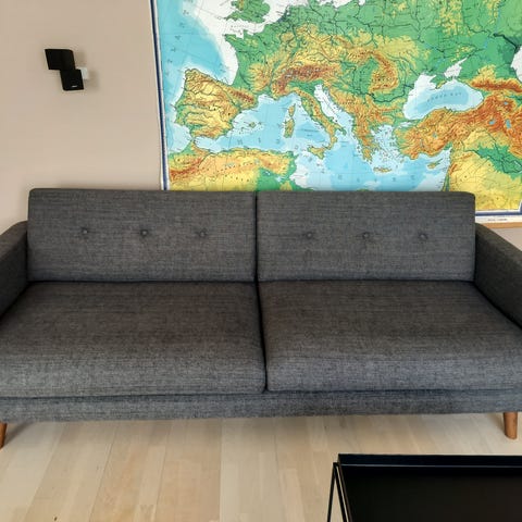 I god stand og er blevet professionelt renset for 2 mdr siden. Få tråde i stoffet er buet op, ikke revet over men står ud fra stoffet.