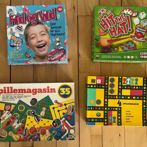 Sælger 4 sjove og lærerige børnespil, perfekte til familier med mindre børn.