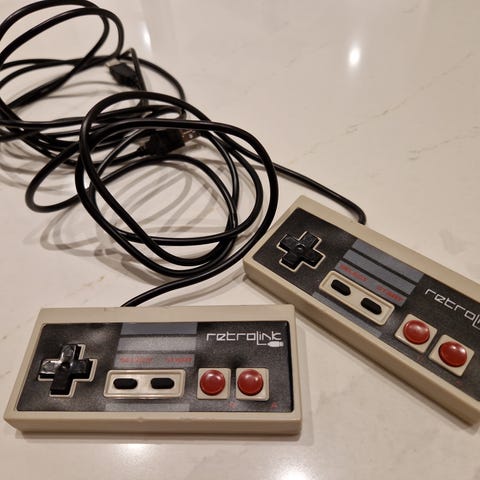 Beeshu Zinger joystick til Nintendo Entertainment System (NES). Det er et tredjepartstilbehør designet som et alternativ til den originale NES-controller. Designet inkluderer en traditionel joystick-form med et greb og de klassiske røde A- og B-knapper samt Select- og Start-knapper. Controlleren har en proprietær rektangulær 7-bens stik, der passer direkte ind i NES-konsollen. Original papkasse. God stand.