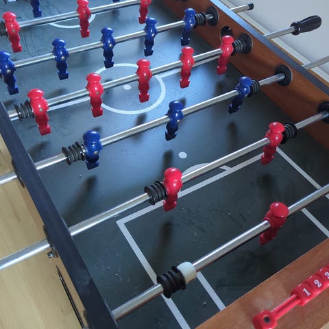 Bordfodboldbord i træ med grøn spilleflade
