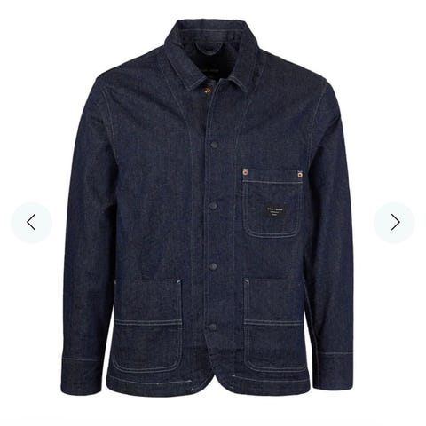 Replay Jakke i størrelse M, farven mørkeblå med brun skulderforstærkning. 100% polyester. Ærmerne kan lynes af så den kan fungere som vest. Jakken er designet til mænd og har en indvendig ternet foer. Den har knap- og lynslåslukning og lommer både indvendigt og udvendigt. Købt i 2013, men har aldrig været meget brugt.
