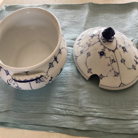 Fra Københavns fajance fabrik. Har desværre en skade, da en hank har været brækket af.