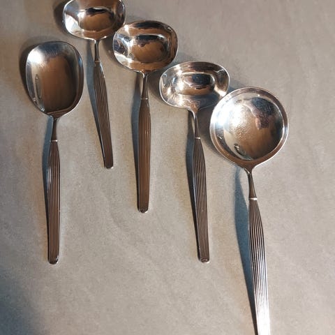 sælger : 4 middags gafler, 4 middags skeer, 4 knive, 3 pålægs gafler, 3 sukker/marmelade skeer, 1 saltske og 6 kaffeskeer i Savoy sølvplet frigast danmark. i god stand . befinder sig i Aarhus kan afhentes, eller sendes med post Nord til pakkeshop , prisen er inkl fragt 2 kg. mobil pay betaling . bruger ikke Fix og færdig . afhentes er prisen 460kr fast.