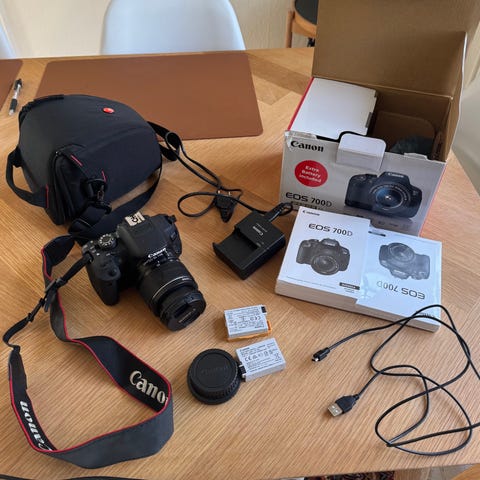 Næsten ubrugt spejlreflekskamera med to objektiver - 18-55 mm og 55-250mm. Taske medfølger
