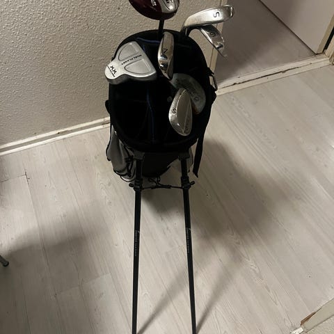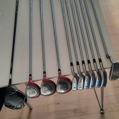 Startersæt med golfkøller i forskellige størrelser og modeller. Golfkøllerne inkluderer jern, Mizuno (7, 9, P, S) samt Daiwa (4, 5, 10) en Yamato wedge og en Ping putter. Derudover køller, Ping (1, 3, 7) samt en Big Bertha (9) fra Callaway. Inkluderer også Callaway Bærebag og paraply.