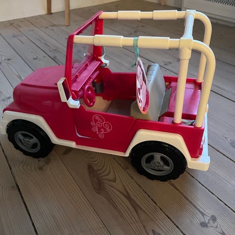 Bil med radio og mange fine detaljer. Brugt til timevis af rollespil. Døre, køler, handskerum og bagagerum kan åbnes. Gearstang kan skifte.