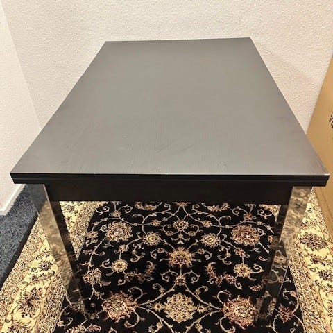 Sort spisebord 160 x 90 cm plus 2 tillægsplader