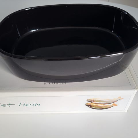 Sort, superelipseform ovnfast fad. Fejler intet udover de obligatoriske brugsridser.