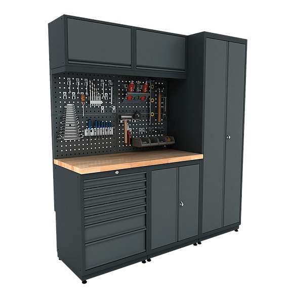 Reolsystemet kan bygges ud i en uendelighed, så det passer lige netop til dit værksted, ved tilkøb af ekstra vanger og gavle.