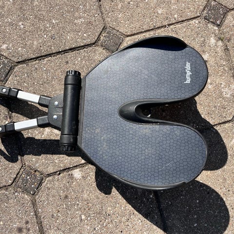 Bumprider-ståbræt (søskendebræt) med sæde i god stand sælges billigt.
