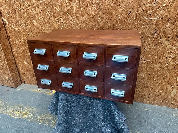 Chartol Teaktræ,med 3 skuffer og skriveplade,4 mindre skuffer over skriveplade.