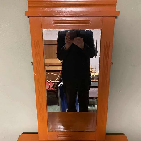 Colman's Mustard spejl med en træramme. Spejlet har et dekorativt motiv med Colman's Mustard logo og King George V (Regeringsperiode 1910-1936). Colman's har eksisteret over 200 år. Alder på spejlet ukendt, se billeder. Mål: ca. 23.5 x ca. 34 cm.