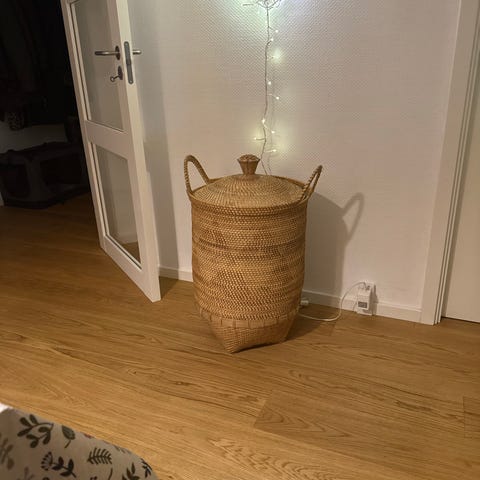 Kan hentes på Nørrebro i København med let adgang til parkering. De to samlede vasketøjskurve er nemme at bære og kan være i et bagagerum, så behøver ikke blive skilt ad for at transporteres.
