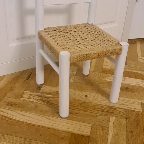 Børne fletstol er par af trådene er gået. Deraf prisen