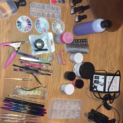 Her er alt hvad du skal bruge til at lave gel negle. Noget er brugt men der er også nye ting i blandt.