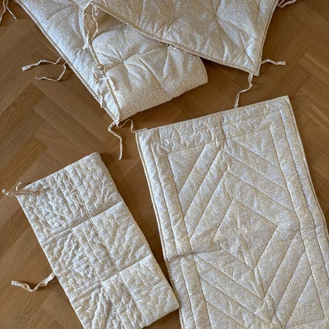 Vi har perfektioneret den klassiske sengerand! Med fyld af økologisk Kapok for et sundt sovemiljø og en ny feature, som sikrer, at arme og ben ikke kommer igennem tremmerne, er du garanteret nogle trygge soveomgivelser med vores nye sengerand. Er brugt sparsomt, flot stand.