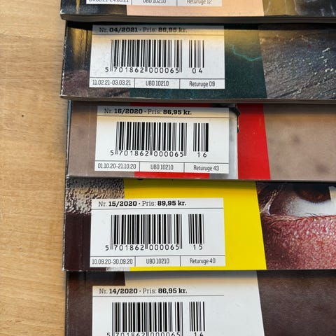 mere omfattende og grundigere artikler end i f.eks ill videnskab. 20 kr stk +porto 43 kr gls
