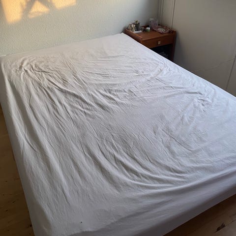 Seng 200x140 cm. Inkl. topmadras og ben.