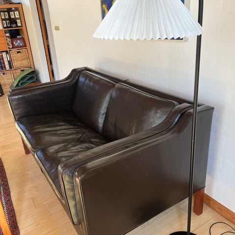 Velholdt to personers lædersofa, designet af Børge Mogensen, model 2214, sælges.