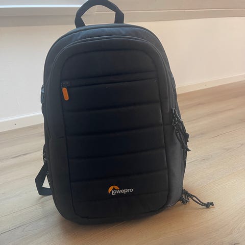 Lowepro Photo Trekker AW II er en sort kamera rygsæk med justerbare ruminddelinger til opbevaring af kameraudstyr. Tasken har polstrede skulderremme, bærehåndtag og en separat lomme til bærbar computer. Materialet er holdbart og designet til at beskytte foto- og computerudstyr under transport.