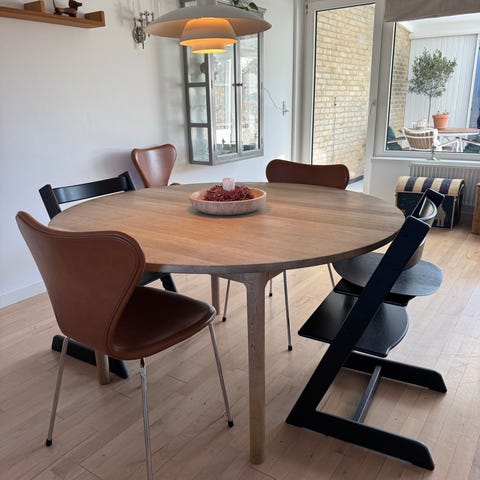 Få ridser fra tidligere ejer, disse vist på billeder, derfor den billige pris. Vi har dog på ingen måde bemærket dem i vores brug af bordet.