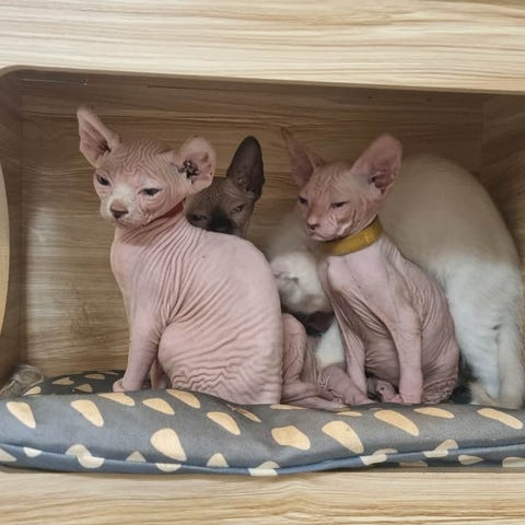 Begge er ren Sphynx. Moren er odd-eyed (dvs. 1 blåt og et grønt øje)