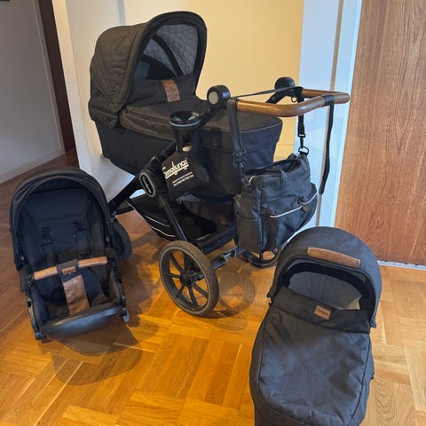 Designet til børn med komfortable og praktiske funktioner. Stel med store hjul for god manøvredygtighed, kan nemt afmonteres, og klappes helt sammen.