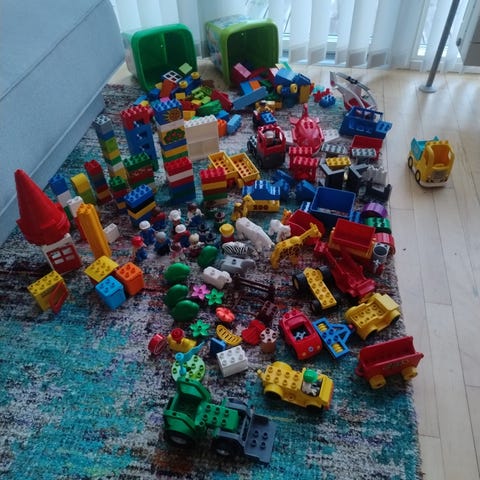 Blandet Duplo i forskellige kategorier/sæt såsom politi, spiderman, dyr, osv.