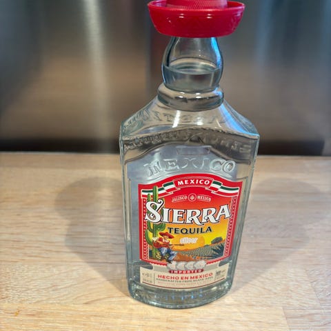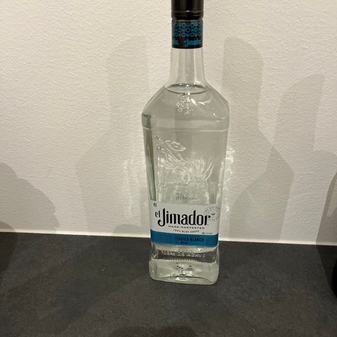 Don Julio 70 Tequila flaske med gennemsigtigt glas og sort prop. Flasken har en firkantet form og er designet til opbevaring af tequila.