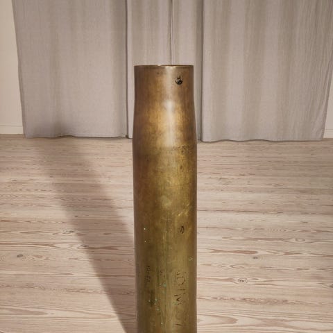 Militær, 75 MM HYLSTER MARINE LAMPE, 75 MM DANSK PRODUCERET GRANATHYLSTER - OMDANNET TIL EN "MARINE"-LAMPE - GRANATBUND BL.A. STEMPLET "AMA" - AMMUNITIONS ARSENALET