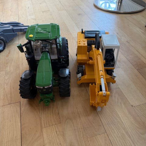 Hej sælger denne john deere udkørselsmaskine/træhenter rigitg fin legetøj hvor forhuset kan drejse og en kran til at tag træ op med.