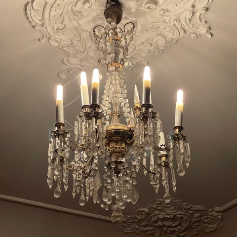 Flotte lysekroner fra Indien - med ekstra kultrådspærer så der er til mange års lys. Kan tilsluttes lysdæmper - fra loft og ned = 1 meter og ca 80 cm i omkreds
