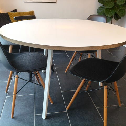 Hat loop stand bord sælges. Brugt men står rigtig pænt. Har dog enkelte små hakker i kanterne - intet af betydning. Men sælger derfor billigt. Se billeder.