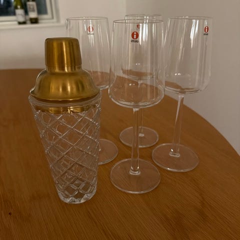 Iittala glas sæt bestående af 4 klare glas med tekstureret overflade. Glasene har en rund fod og er velegnede til servering af drikkevarer.