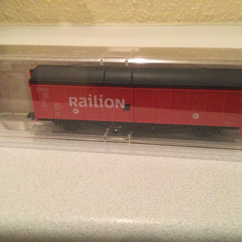 Modeltog i sort og rød med skumindpakning