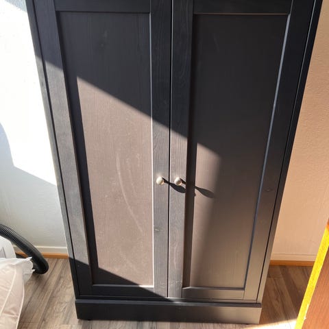 2 x Skab med låger 82*37 B/D, egetræsfiner, 1x Vitrineskab med skydelåger 120x37 B/D, egetræsfiner nypris 5400. Perfekt stand