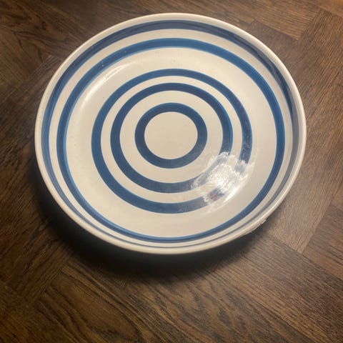 Kähler tallerken med rund form og dekorativ kant i sort og blå farver. Fremstillet af keramik, velegnet til daglig brug i køkkenet.