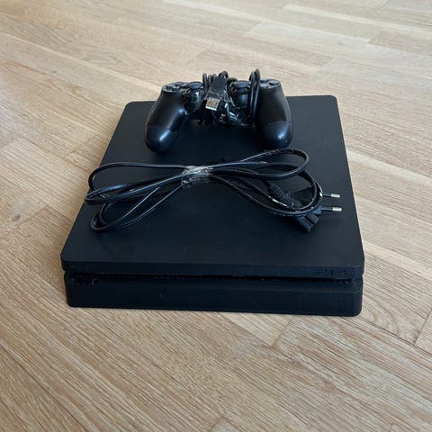Sony PlayStation 4 spillekonsol leveres med en controller og spillet FIFA 25. Konsollen og controller er sort og fungerer fint. Konsol er nulstillet. Sælges da PS5 er købt.