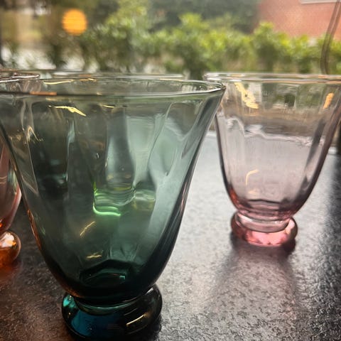 8 glas med rosakant og vandkaraffel fra Bungalow