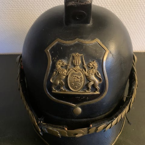 Antik Politi hjelm - flot stand - pæn patineret / kig fotos - sælges fra samling som skal videre