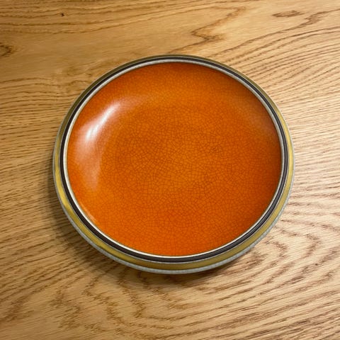 Royal Copenhagen Fajance tallerken med en diameter på 25 cm. Tallerkenen har et dekorativt mønster med guld- og sorte detaljer. Fremstillet i fajance materiale.