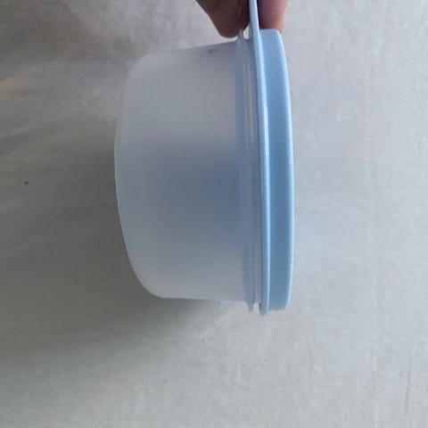 Stor orange Tupperware bøtte til madrester, kagedåse og meget mere.