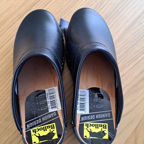 Helt nye hvide dame træsko. De er stadig i kassen.
