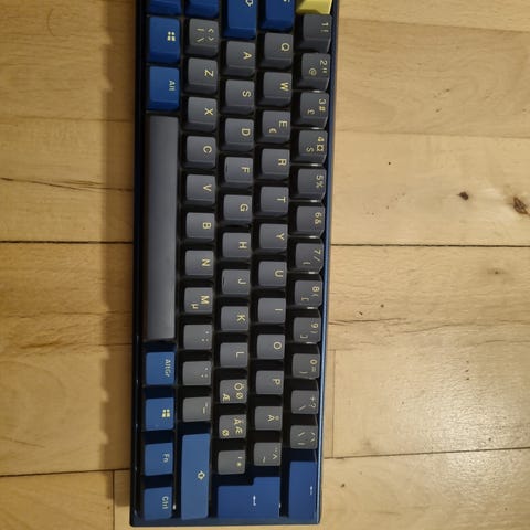 Kompakt 60% layout, så du får mere plads på bordet og til musen, men stadig alle funktioner via Fn‑lag.