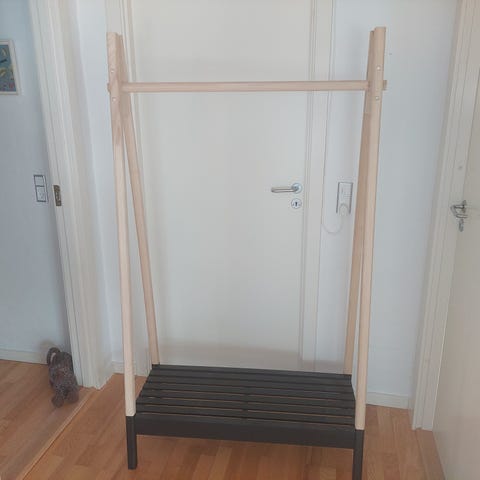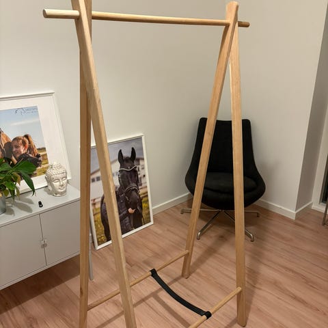 Sælger dette smukke og minimalistiske Carve tøjstativ fra ILVA. Stativet er udført i lakeret massiv eg, hvilket giver det en eksklusiv kvalitet og langt mere stabilitet end billigere modeller i metal eller bambus.