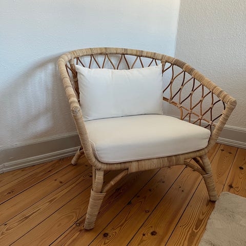 Smukkeste kurvestol. Puder medfølger. Den ene pude har en fejl/plet som ikke er forsøgt fjernet.