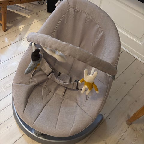 Stolen er i fin stand og drejer som den skal. Dog er der et stykke velcro på venstre side af trepunktselen, der snart falder af og derfor skal den sys fast. Det kan hurtigt klares med en symaskine.